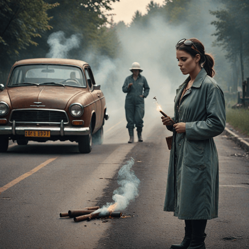Julia had gotten use to ghosts. She had seen them childhood, since an unfortunate accident involving a vending machine and a tarot deck. But ghostly road construction, outside was something new. Up ahead, just outside of Evergreen, Colorado, she could see the construction workers, or rather see through them, as the road was shut down and a truck loaded with used furniture and a VW microbus idled in front of her.