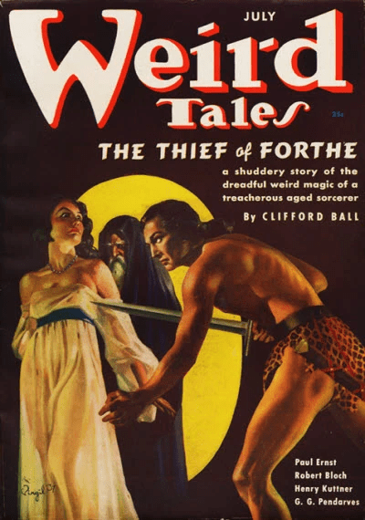 Traditionally, creation of Nephren-Ka, the cursed Pharaoh of Ancient Egypt, whose name was struck from monuments by the priesthoods of his more benign successors, has been ascribed to Lovecraft’s “The Haunter of the Dark” Lin Carter tells us this is not exactly so. According to Carter, Bloch’s story “Fane of the Black Pharaoh,” though not published until 1938, had been written prior to “Haunter in the Dark” and that Lovecraft had already seen, and been impressed by, Bloch’s manuscript prior to writing “Haunter.”